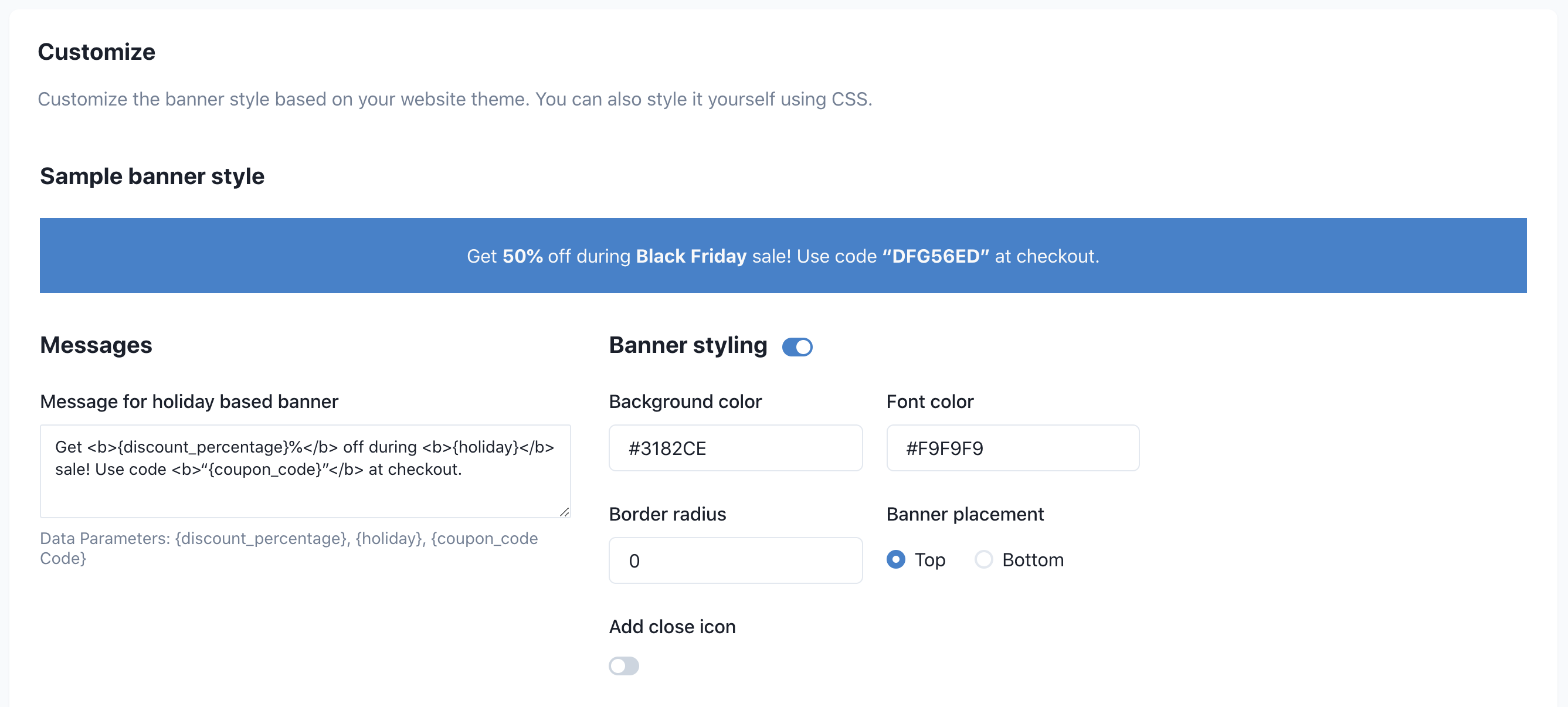 You can customize discount banners based on your website theme. Learn more about customizing discount banners.