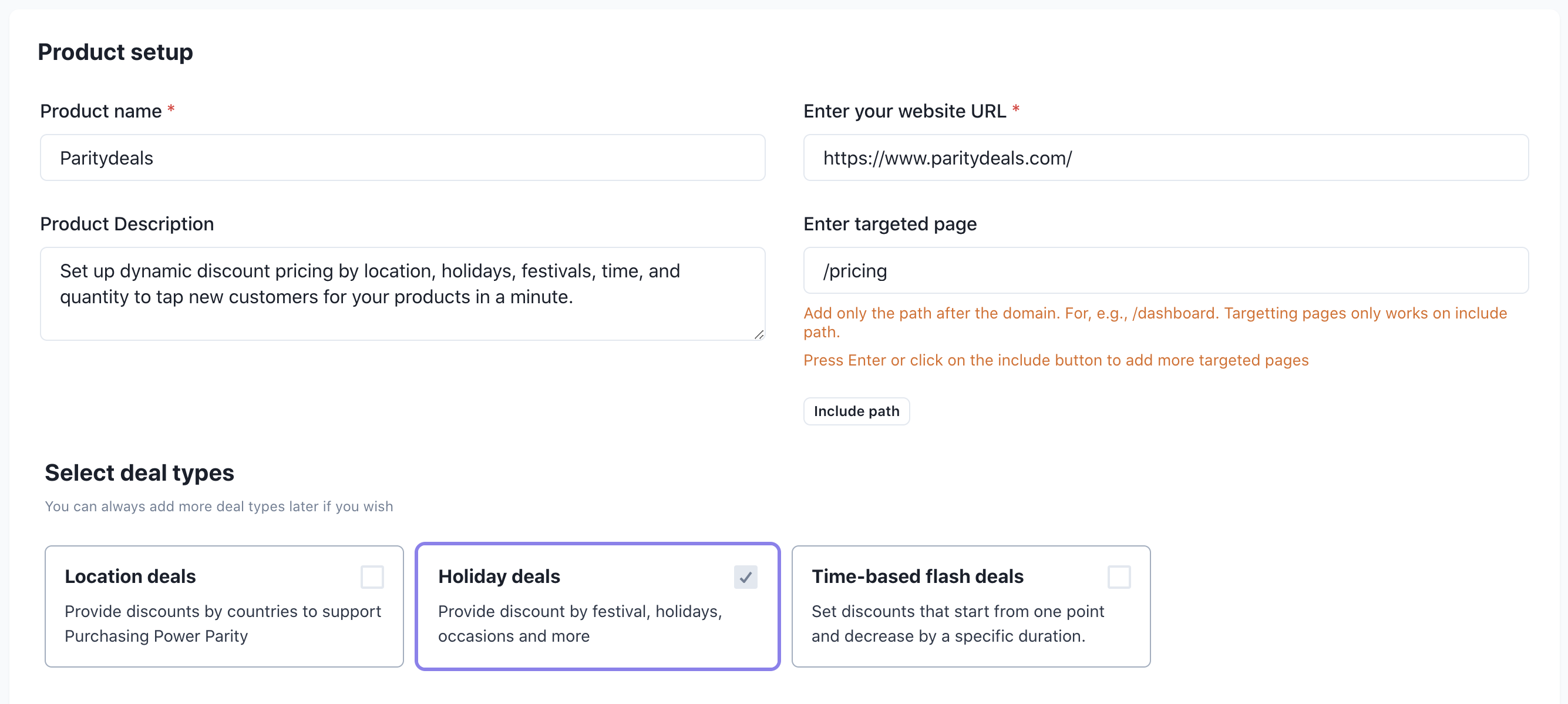 For example, specify the pricing page path if you want to display the discount banners only on the pricing page.